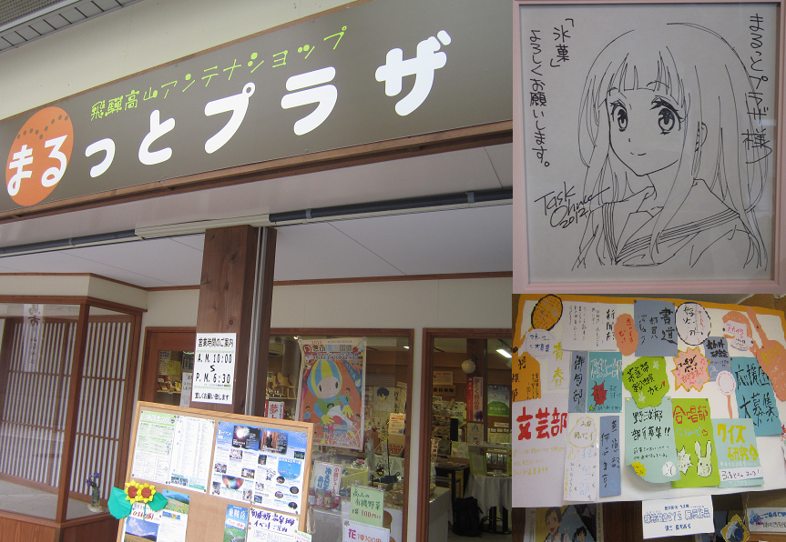 氷菓、ひぐらし の聖地 高山市、白川郷 に行きました。 氷菓はリアルタイムに見ているのですごく良かったです(・∀・)高山市に着いたら、画像にも有ります 「まるっとプラザ」 に最初に立ち寄ると氷菓の巡礼マップが有るので行動しやすくなると思います。それに タスクオーナ先生 のサインや展示品もあるのでぜひ立ち寄ってみてください。 |